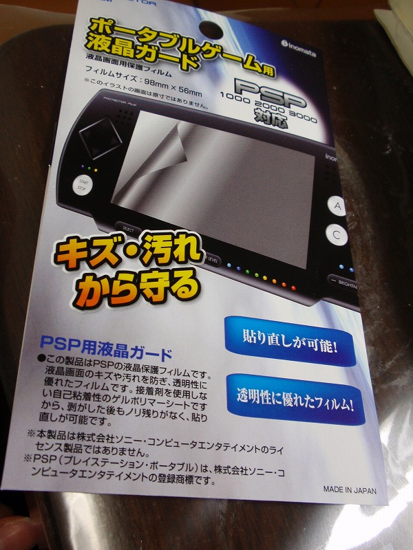 100円ショップで売っているPSP用の保護フィルムを切って貼った